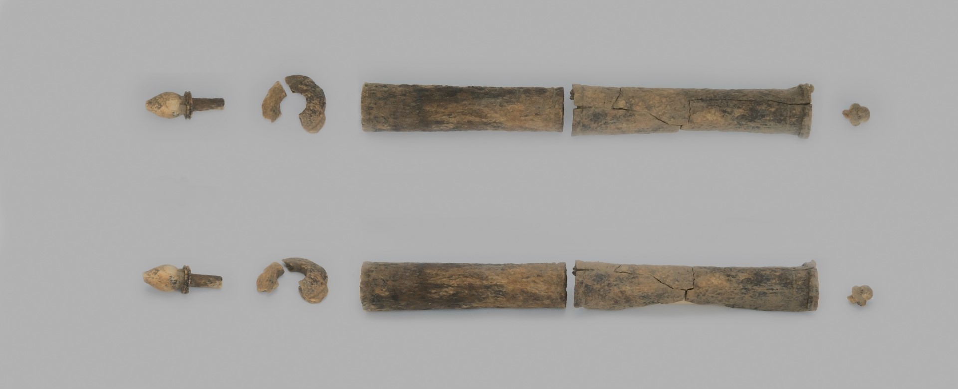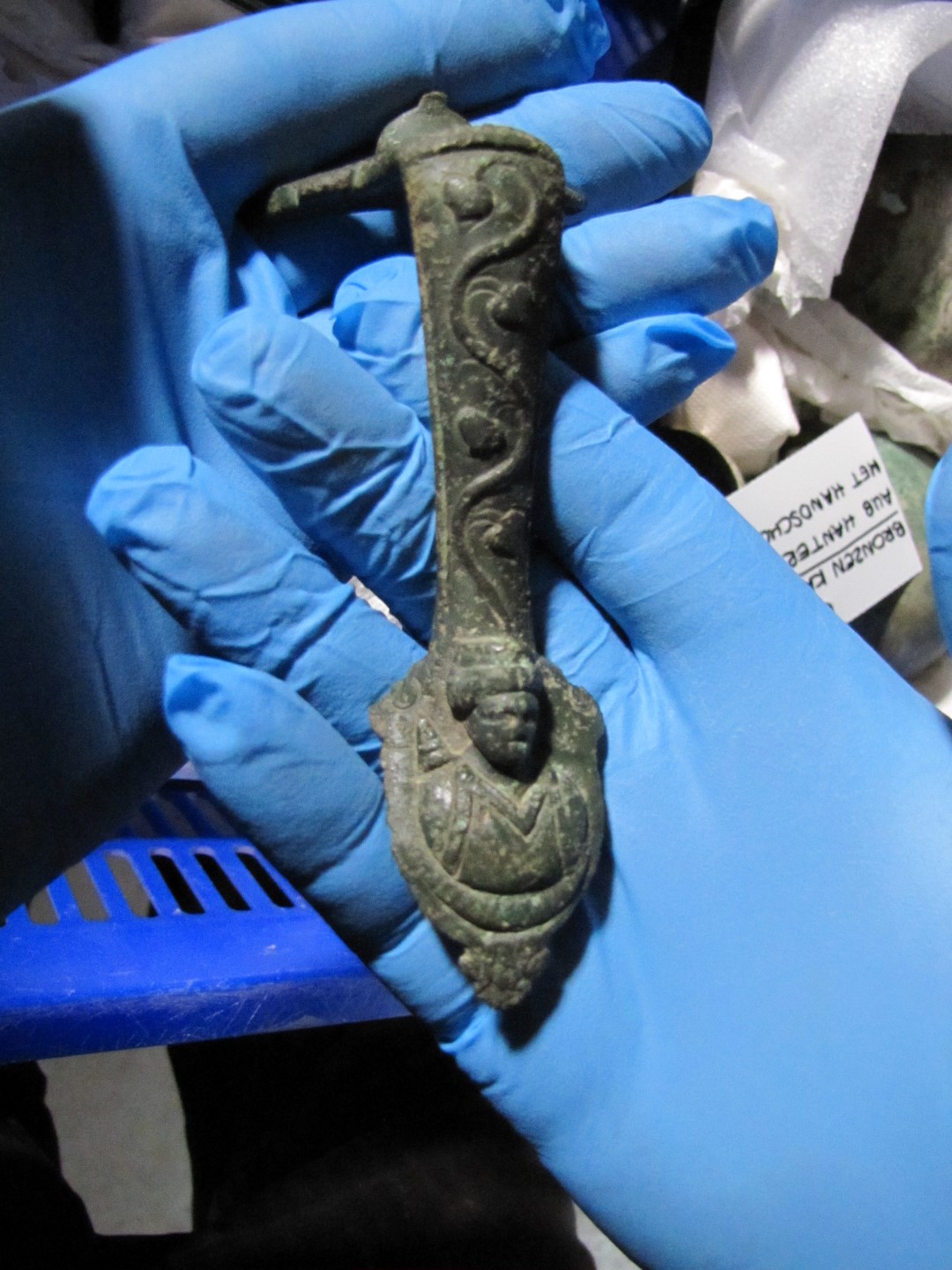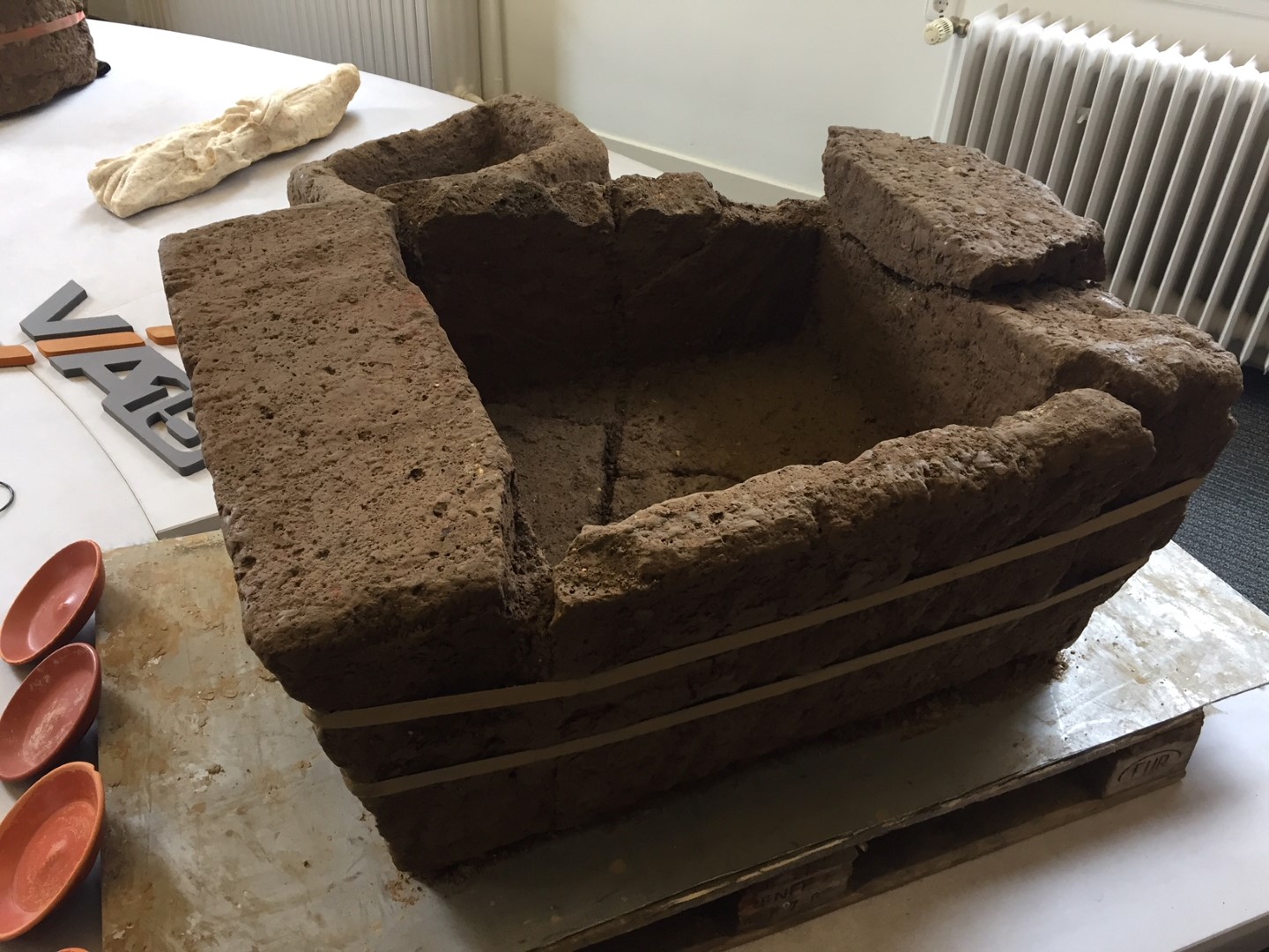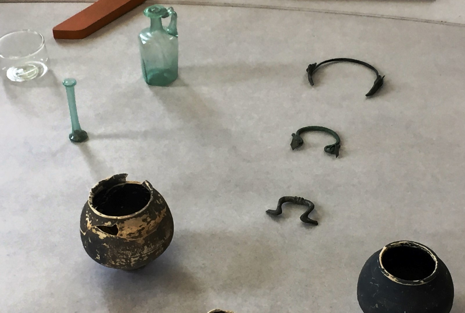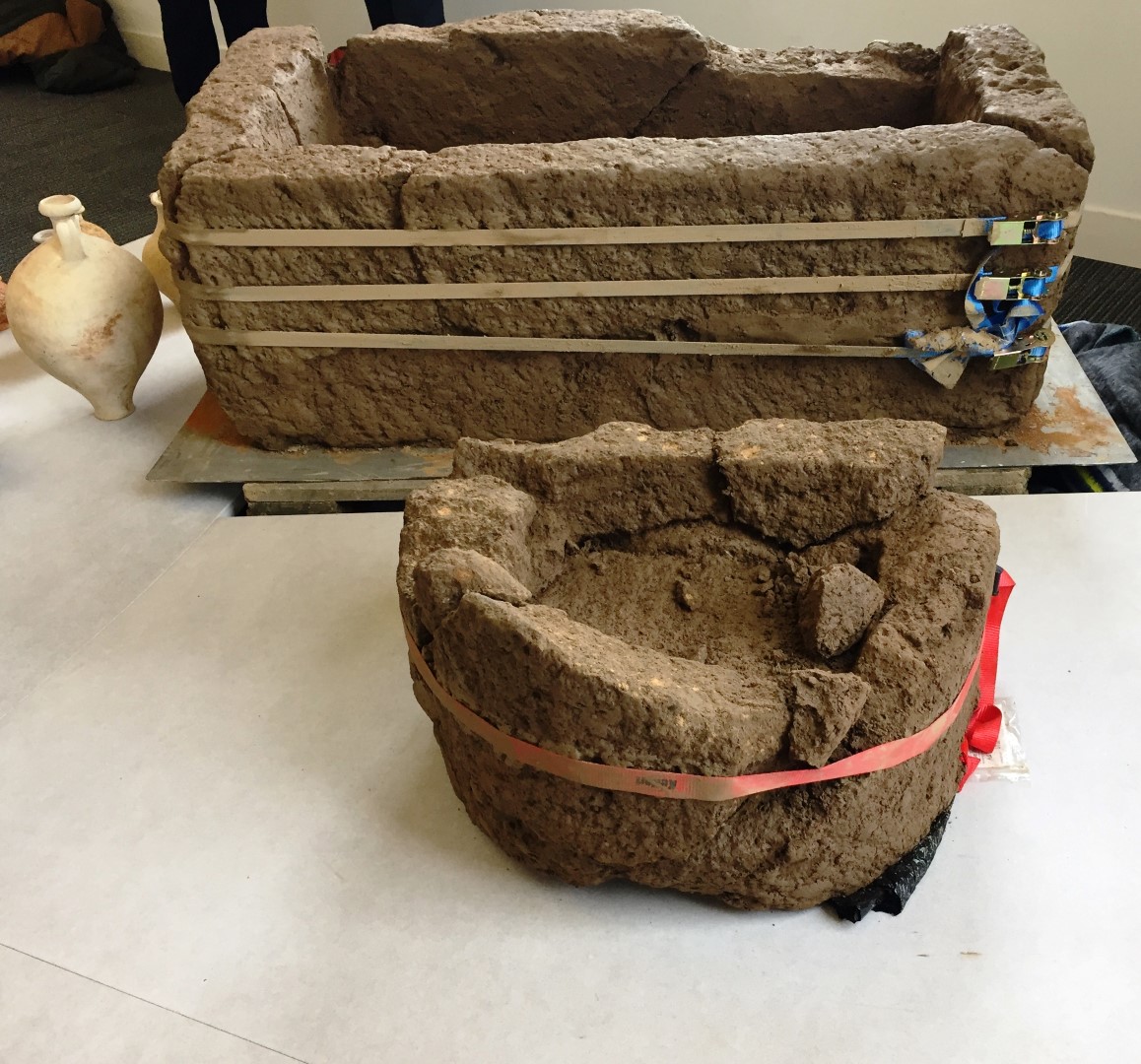 Tot de vondsten behoren verder fragmenten van vier perkamentrolhouders, een stenen grafmonument met vrouwenafbeelding en een skelet van een baby.