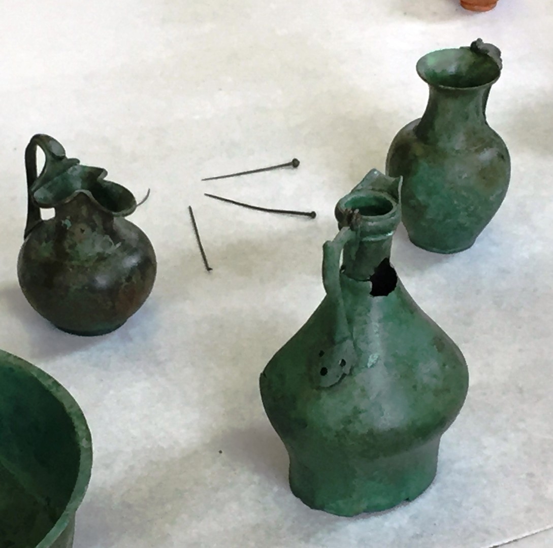 Bemmel – Luxe grafgiften als geverfd aardewerken serviesgoed; versierde bronzen schenkkannen, drinkbekers en schalen, maar ook spiegels en een compleet parfumflesje met inhoud. Dat zijn enkele van de bijzondere vondsten uit het Romeinse grafveld bij Bemmel.